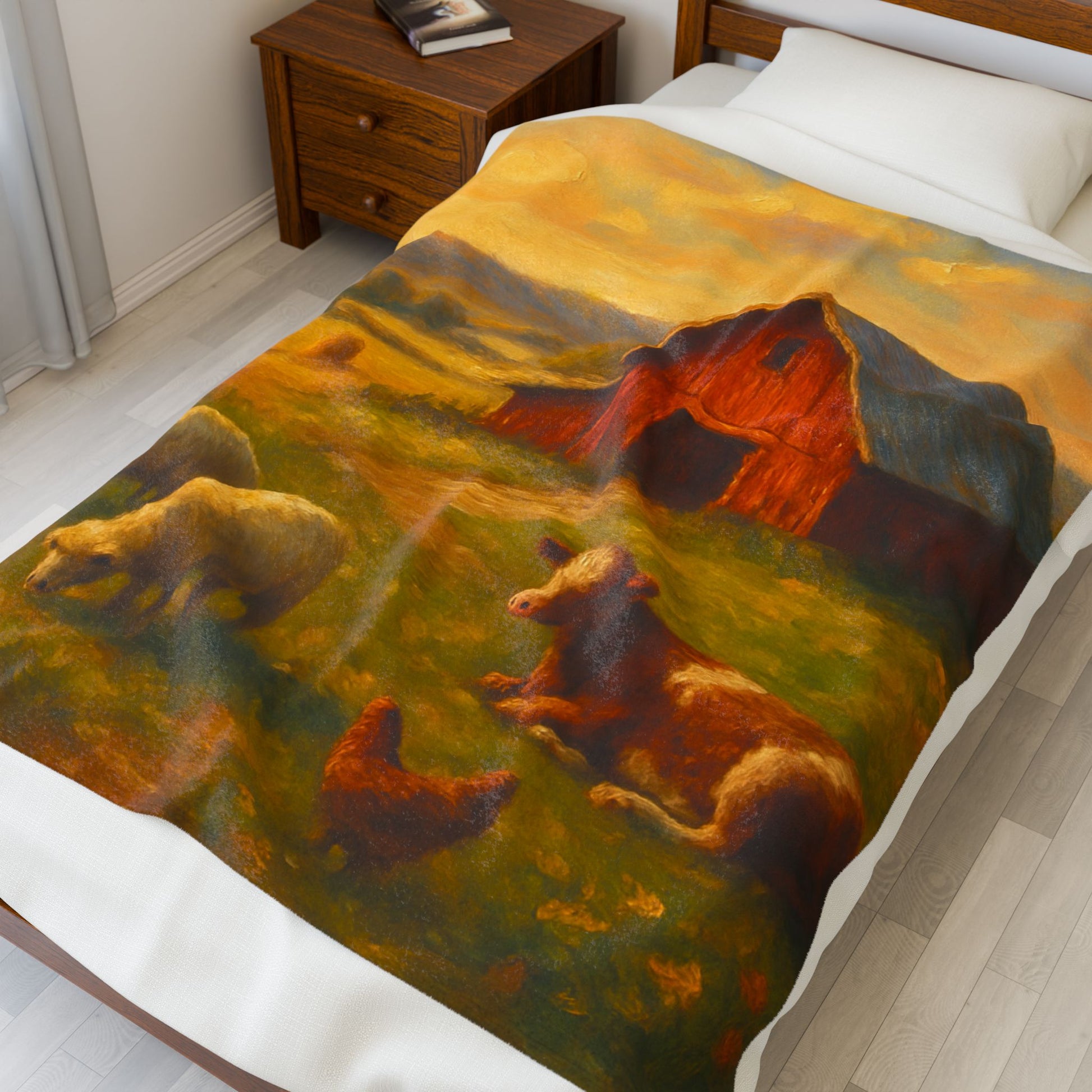 Cozy Farmhouse Velveteen Plush Blanket, Soft Warm Throw, Rustic Decor, Gift for Home, Farmhouse Bedding